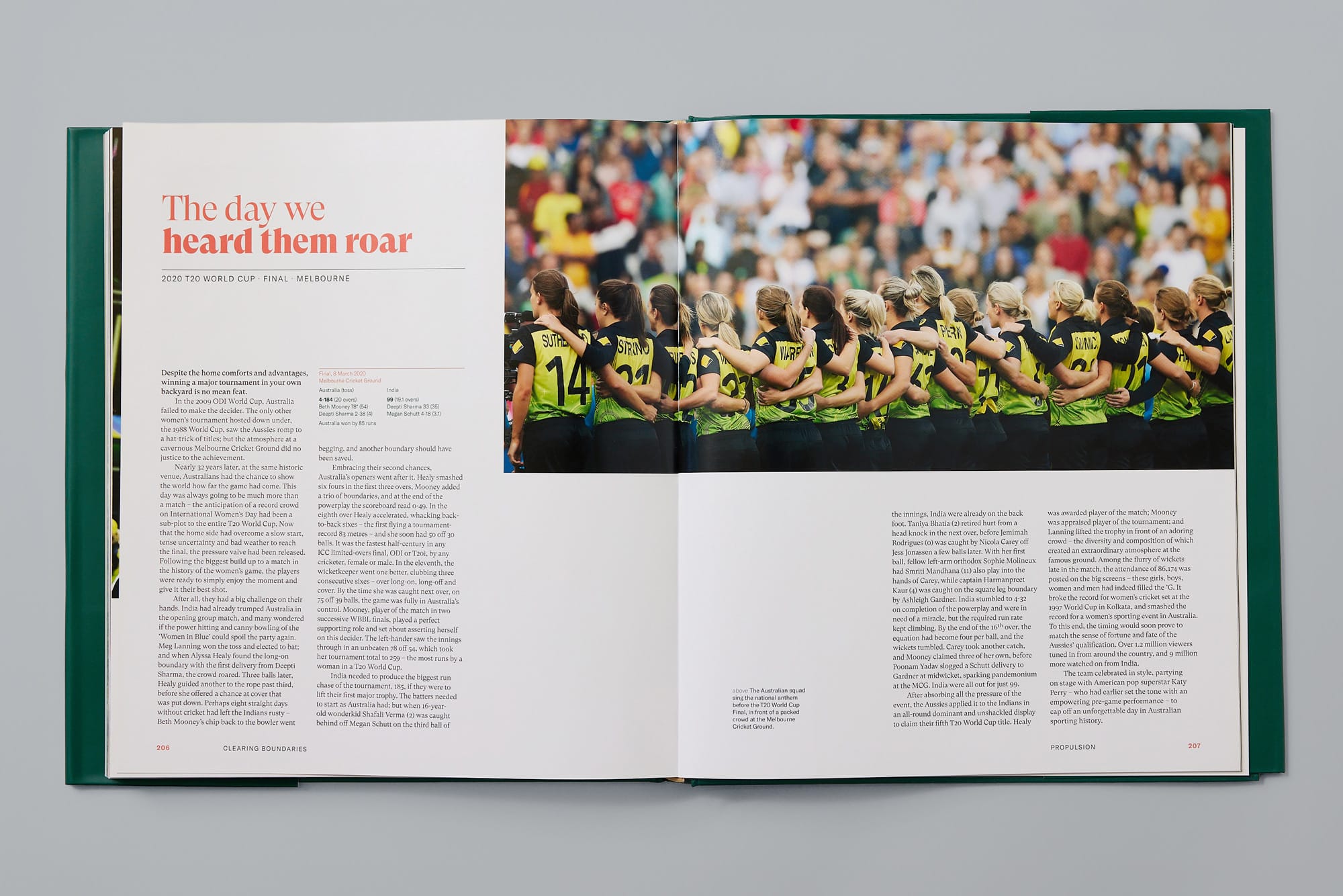 It is the first illustrated book dedicated to Australian women’s cricket. Many historical photographs previously inaccessible to the public have been given a new life in Clearing Boundaries. Also featured are the statistical records of every woman to represent Australia on the cricket field, and a foreword from one of the country’s greatest cricketers, Belinda Clark AO.