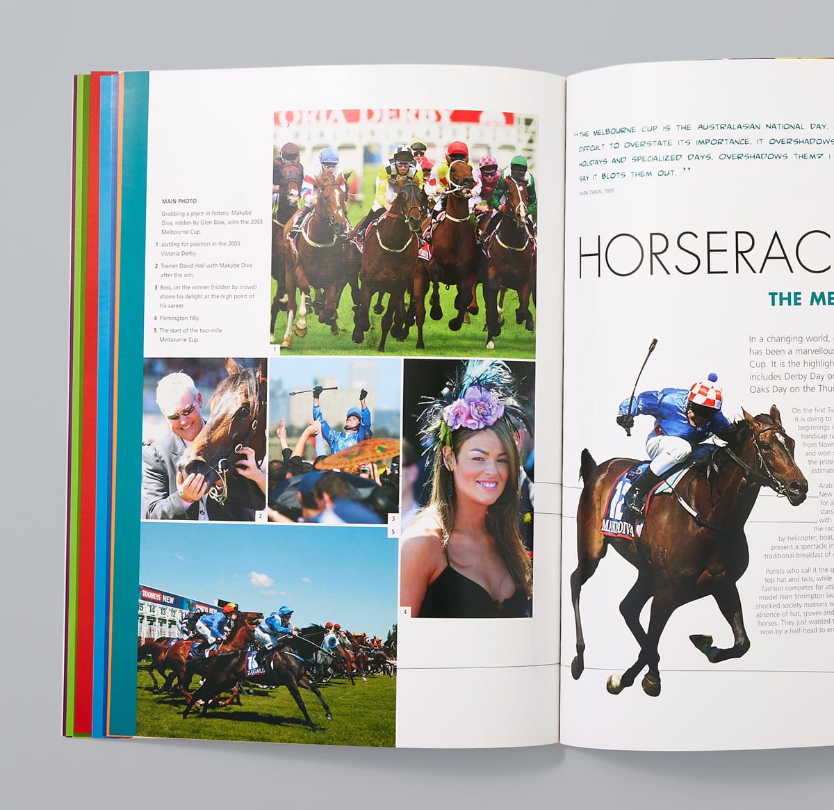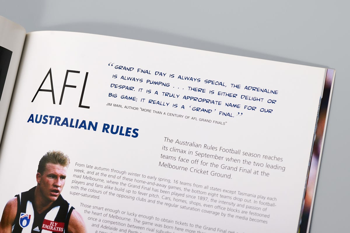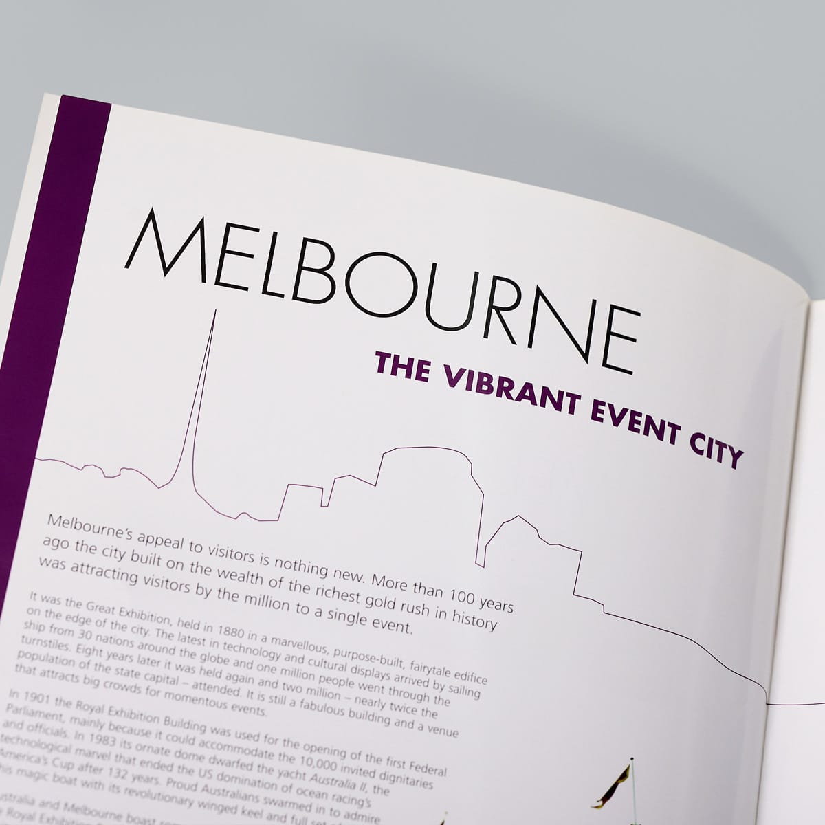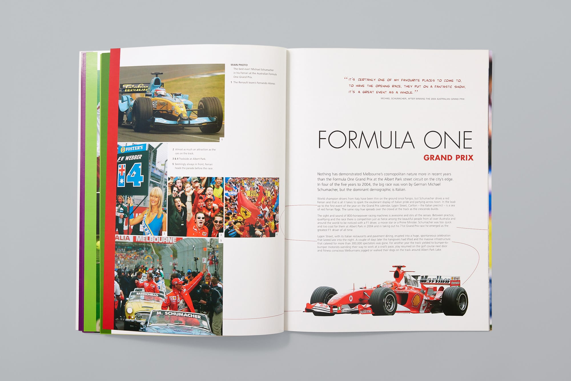 I’d like to think this project exemplifies our ability as a boutique publisher to identify opportunities and collaborate with proactive corporate stakeholders to create an authentic, engaging product. With an identified gap in the market, we delivered a high-quality memento for thousands of Melbourne’s event-goers. Australia’s Event City is much more than a traditional programme or tourism brochure – something meaningful, lasting and true to the sporting smorgasbord offered by this special place.”
