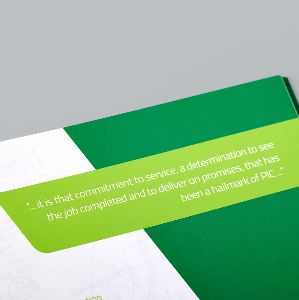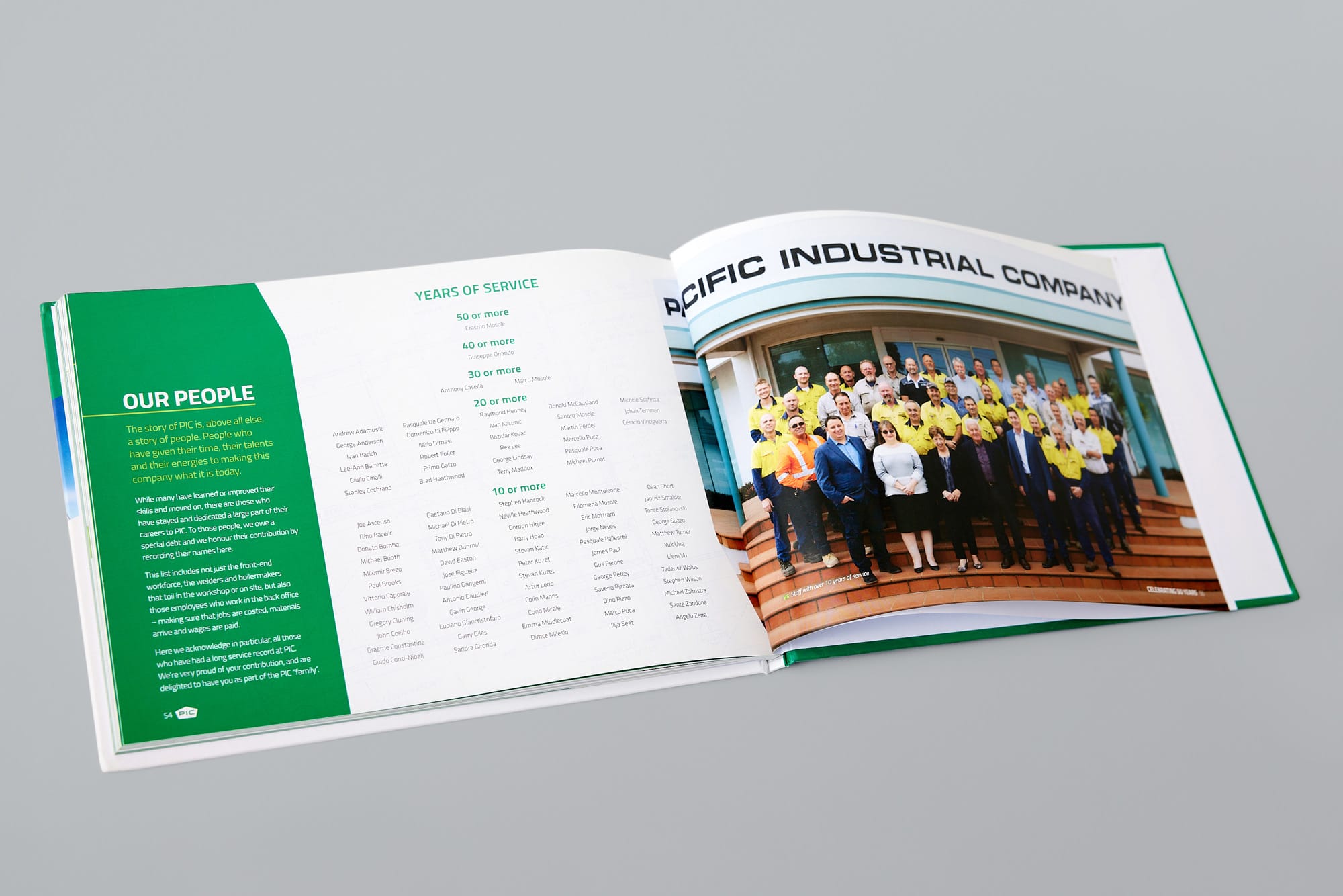 This project was the catalyst for a full rebrand of PIC by Bonser Design, and the book itself has since turned into an unexpected marketing tool – so engaging have their clients found the story, PIC use it as their primary communication when engaging with new business.