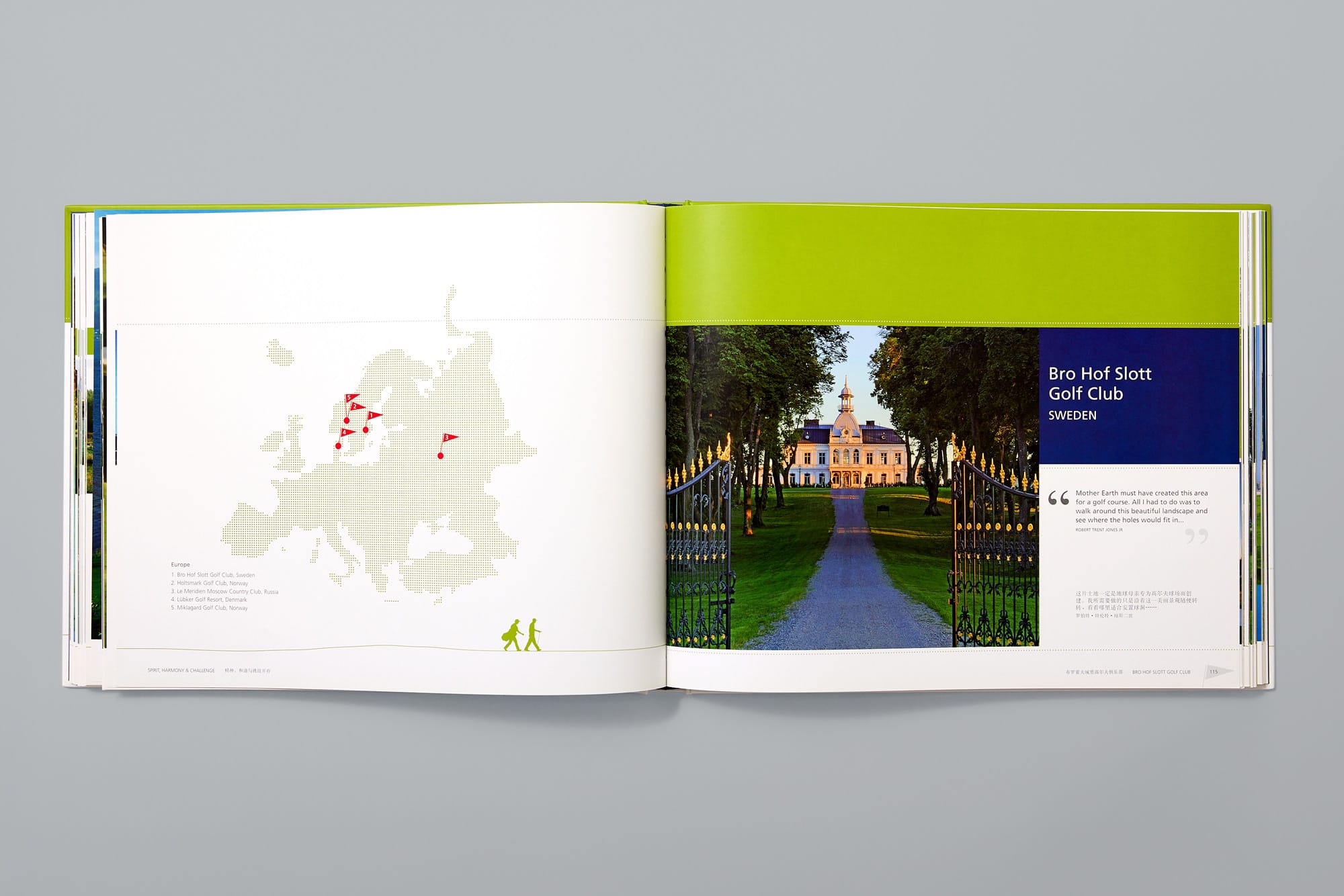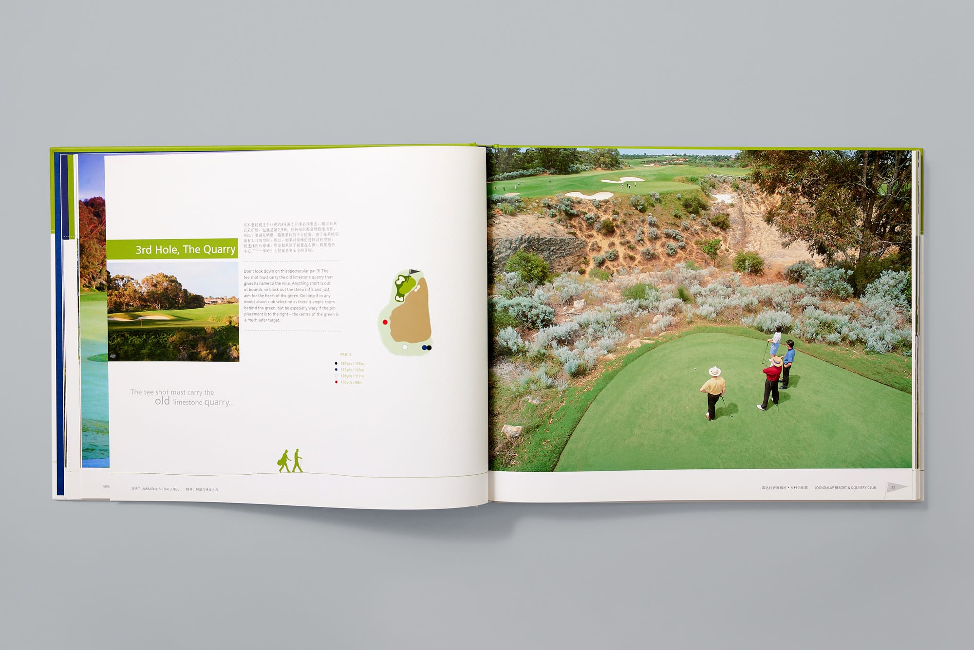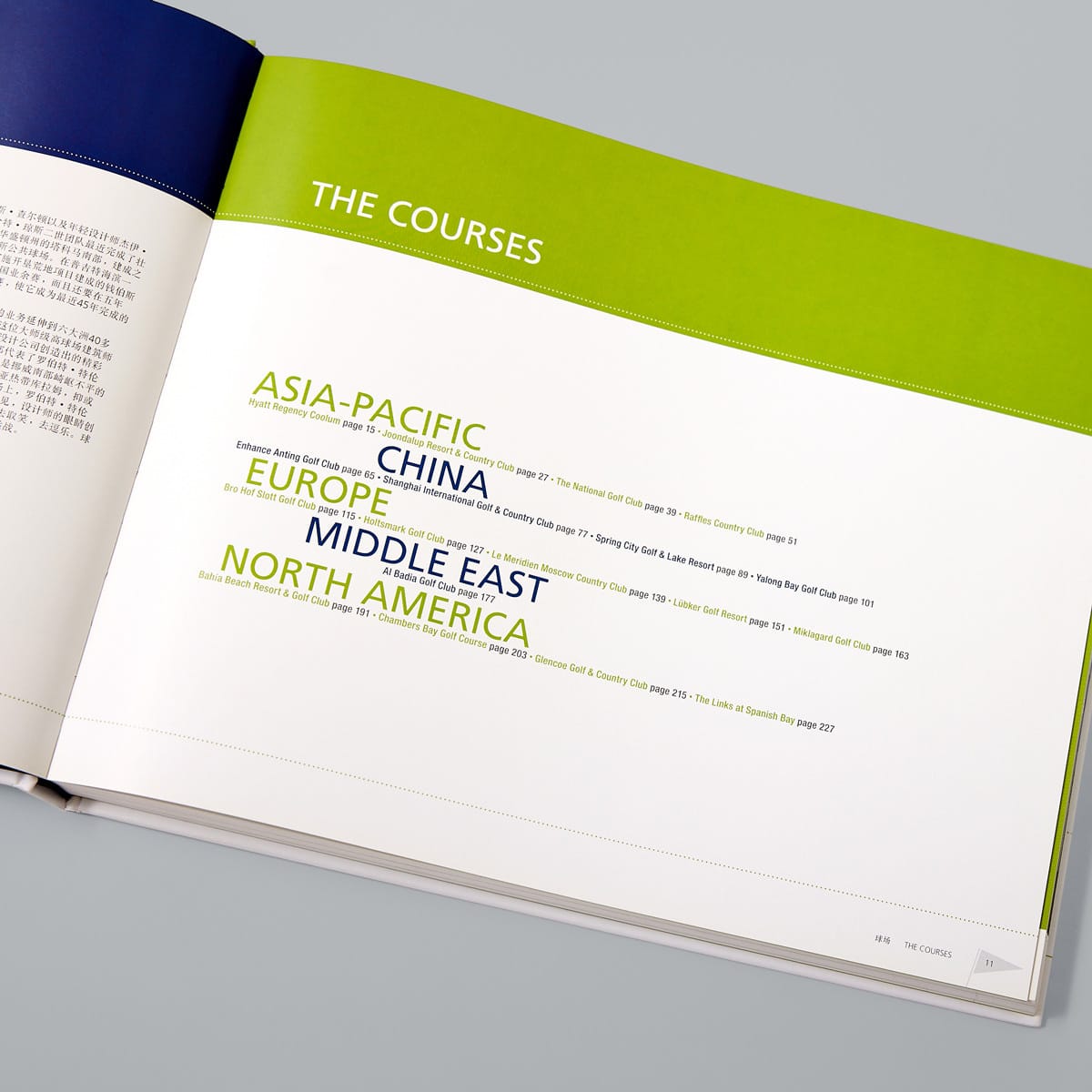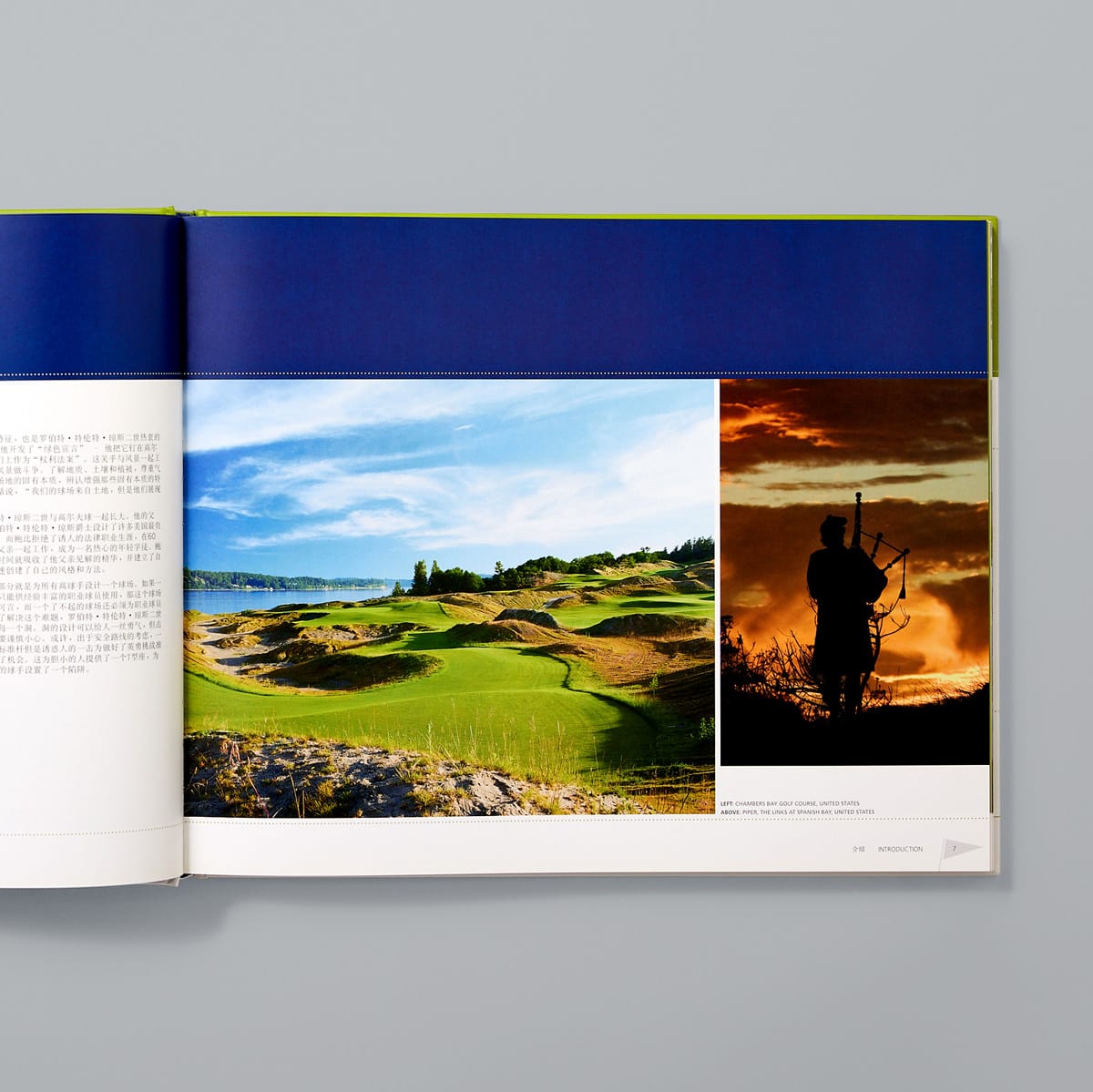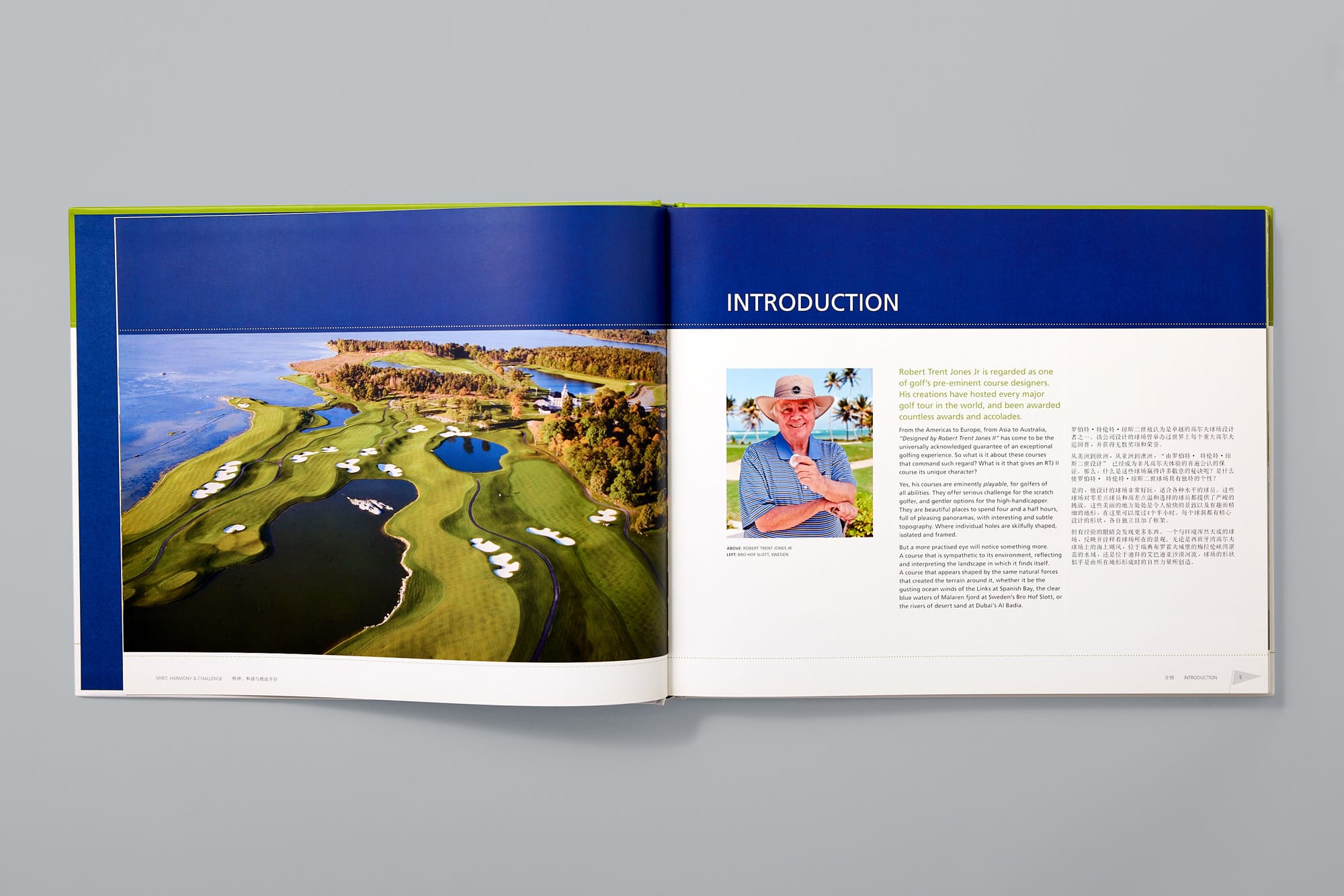 Jones was at the frontier of course design in China, and it was important to produce a dual-language edition – possibly the first coffee table publication on golf with Chinese text.