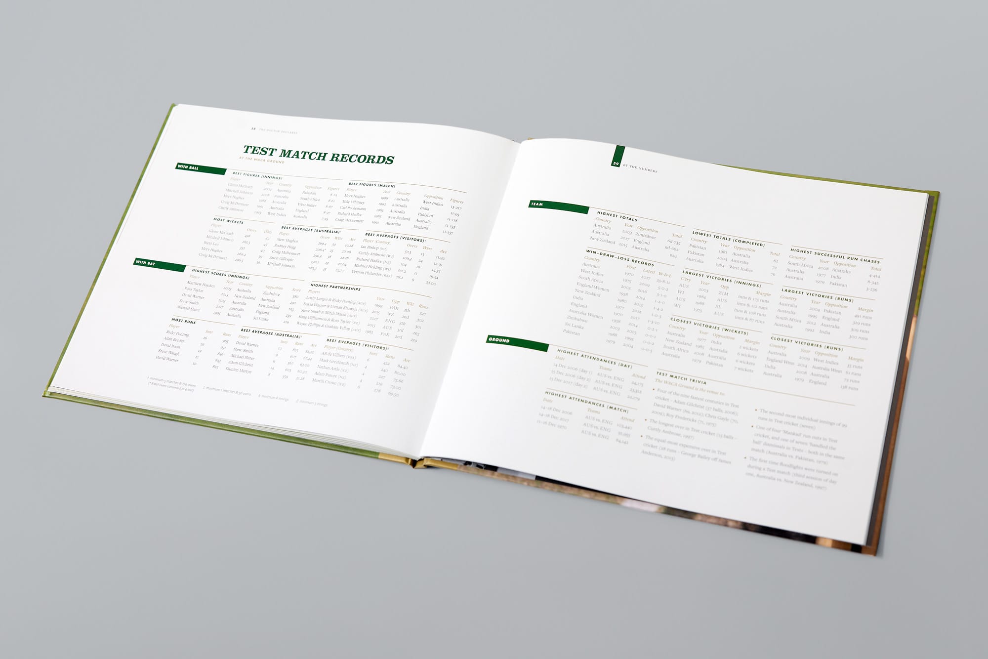 Having witnessed almost every Test at the WACA Ground since 1970, it was a privilege to collaborate with Ken Casellas to capture the history and character of this iconic venue. With the unwavering support of Wally Edwards of Holman Industries and Christina Matthews of the WACA, we were given free rein to create something special. From the recollection of famous moments to the documenting of its distinctive features, we aimed to celebrate the Ground’s rich story and seal its legacy as a cherished piece of Western Australia’s sporting heritage.”