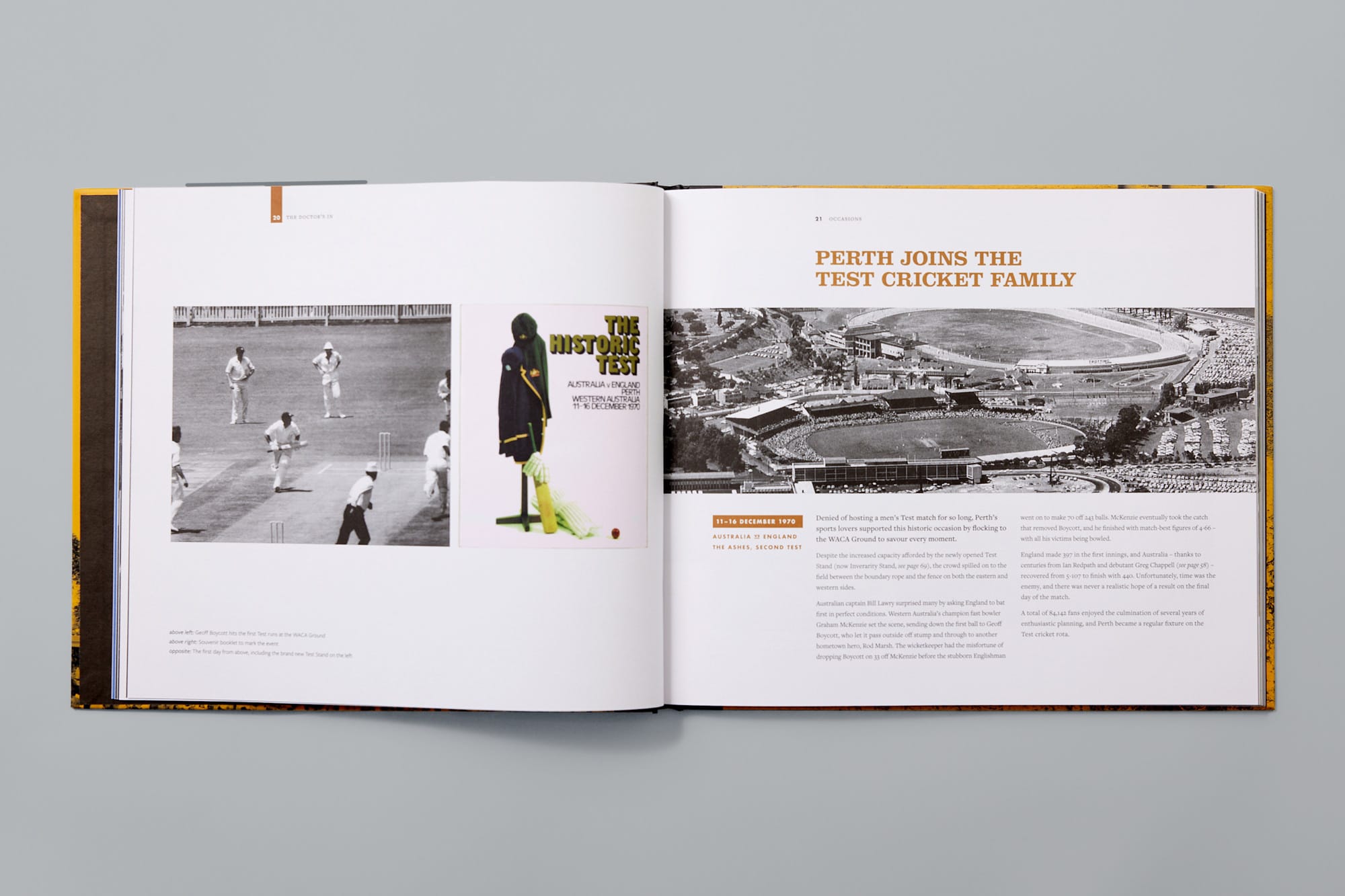 The Doctor’s In – referencing the ‘Fremantle Doctor’ seabreeze synonymous with summer days at the Ground – encapsulates its legacy through memorable moments curated with doyen journalist Ken Casellas and the WACA Museum. Forty-eight matches, spells, innings, incidents and characters are recalled through stories and archival images across five chapters: Occasions, With Ball, With Bat, Theatre and Triumphs.