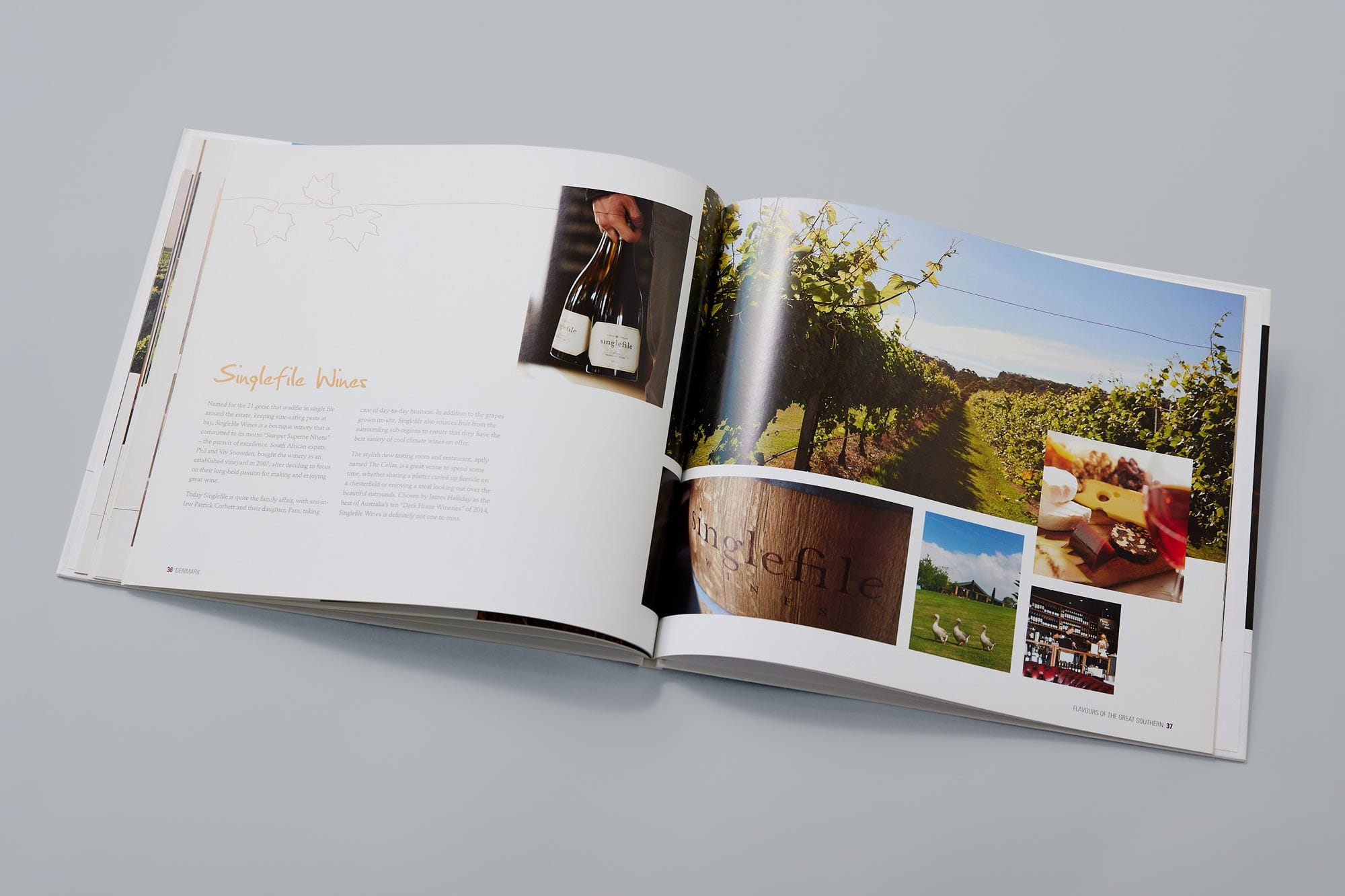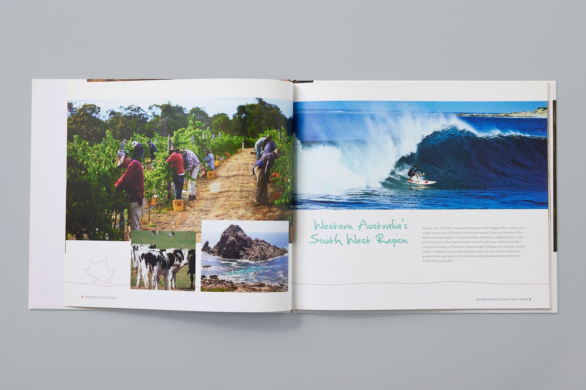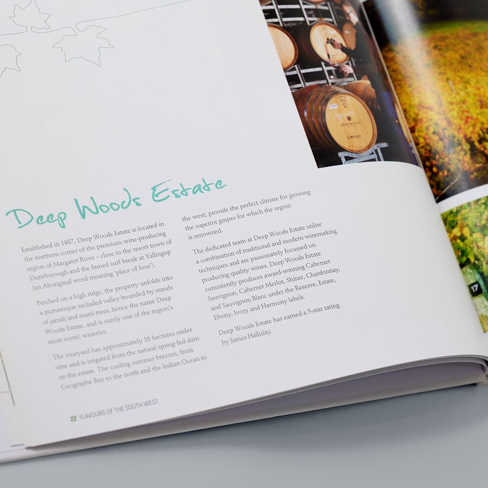 With some major wine labels defining the Margaret River ‘brand’ at the time, we worked with four less-celebrated estates to produce Flavours of Margaret River. The book combined the stories and signature wines of each venue with recipes from their head chefs and aspects of the area’s natural beauty. It was a popular souvenir at cellar doors and bookshops alike, and was even sold in the eastern states as a notable resource on Margaret River.