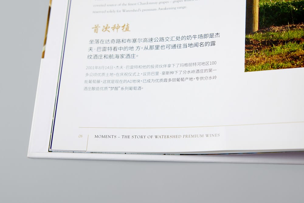 We engaged Churchill Press to produce a high-quality coffee table book which reflected the Watershed story from its conception to that of major award-winning Margaret River wine producer. The book was focused on our major destination market, China, and was produced in both English and Mandarin. In writing and presenting our unique story, Phil and his team handled the content, design and layout with great care. We were thrilled with the end result and highly recommend Churchill Press to any prospective client.”